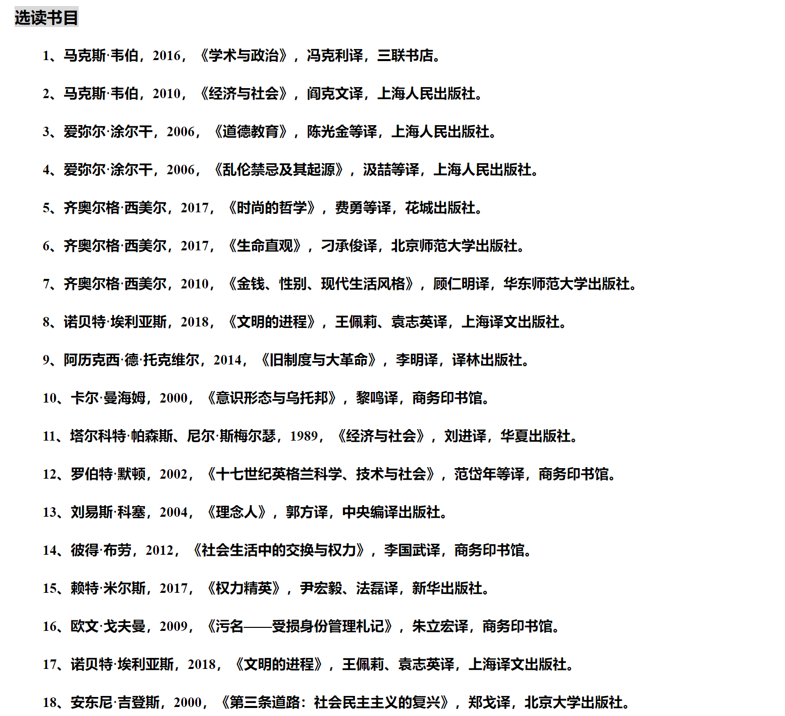 学风优秀,社院学子时常一同结伴图书馆打卡,于书林间一隅与经典相谈甚欢。学院也贴心地为大家准备了一份书单,从入门到精深,由浅入深 ,让每位学子充分感受到社会学的魅力。