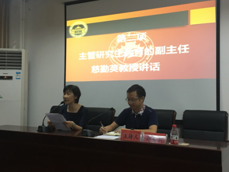 副系主任慈勤英首先表达了对研究生新生的欢迎,同时,作为主管研究生教学的老师,她向研究生新生提出了四点建议,“带着问题去学习、验证问题与常识符合、研究问题符合逻辑、建立在前面知识平台上创新”,为研究生新生做学术提供了很好的指导。