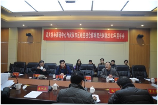 社会学系党总支书记李玉龙、主任林曾教授、社会发展研究所所长罗教讲教授、青山区政协经济科技委员会张明学主任以及武汉市13区委党校校长汇聚一堂,共商合作事宜。