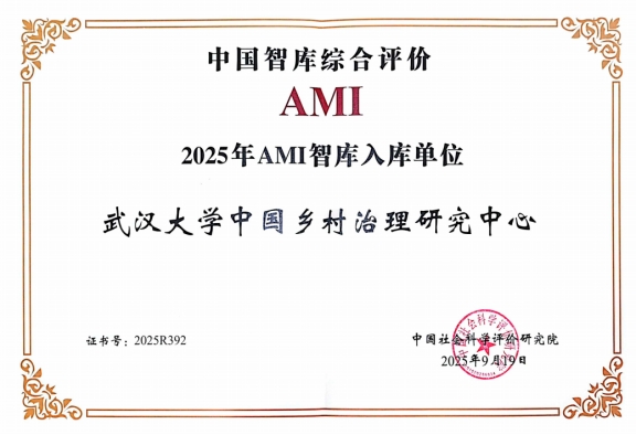 中国乡村治理研究中心成功入选“2025年AMI智库入库单位”。