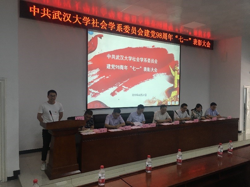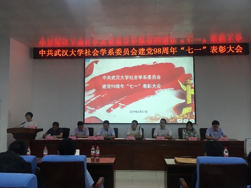 6月27日,社会学系党委在系报告厅隆重举行庆祝建党98周年“七一”表彰大会,全体党委委员出席会议,获表彰代表及师生党员100余人参加大会,会议由系党委副书记赵金利主持。