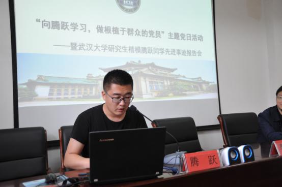 2017年4月27日下午4点钟,“向腾跃学习,做根植于群众的党员”主题党日活动暨武汉大学研究生楷模腾跃博士先进事迹报告会在社会学系系办报告厅拉开帷幕。