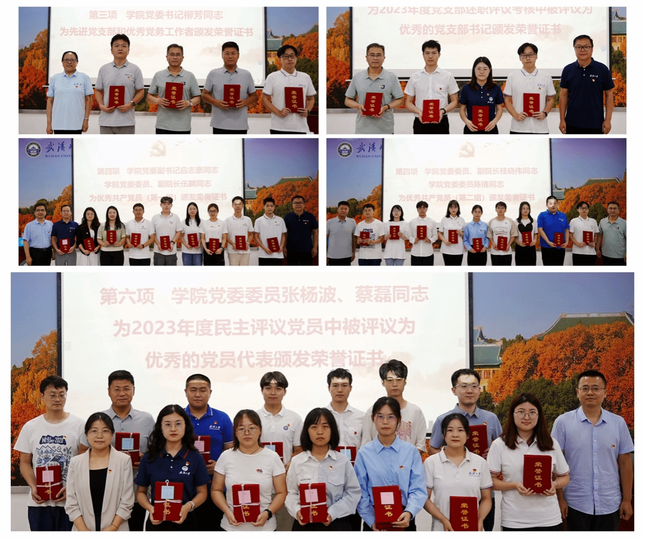 学院党委委员分别为先进党支部、优秀党务工作者、优秀共产党员、2023年度党支部述职评议考核中被评议为优秀的党支部书记和2023年度民主评议党员中被评议为优秀的党员代表颁发荣誉证书。