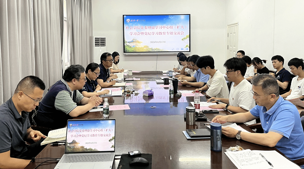 6月17日下午,社会学院党委在学院111会议室召开理论学习中心组(扩大)学习会暨党纪学习教育专题交流会,学校第四督导组成员马玥出席会议,学院党委委员、各党支部书记、学生辅导员、组织员等参加会议。学院党委副书记应志豪主持会议。