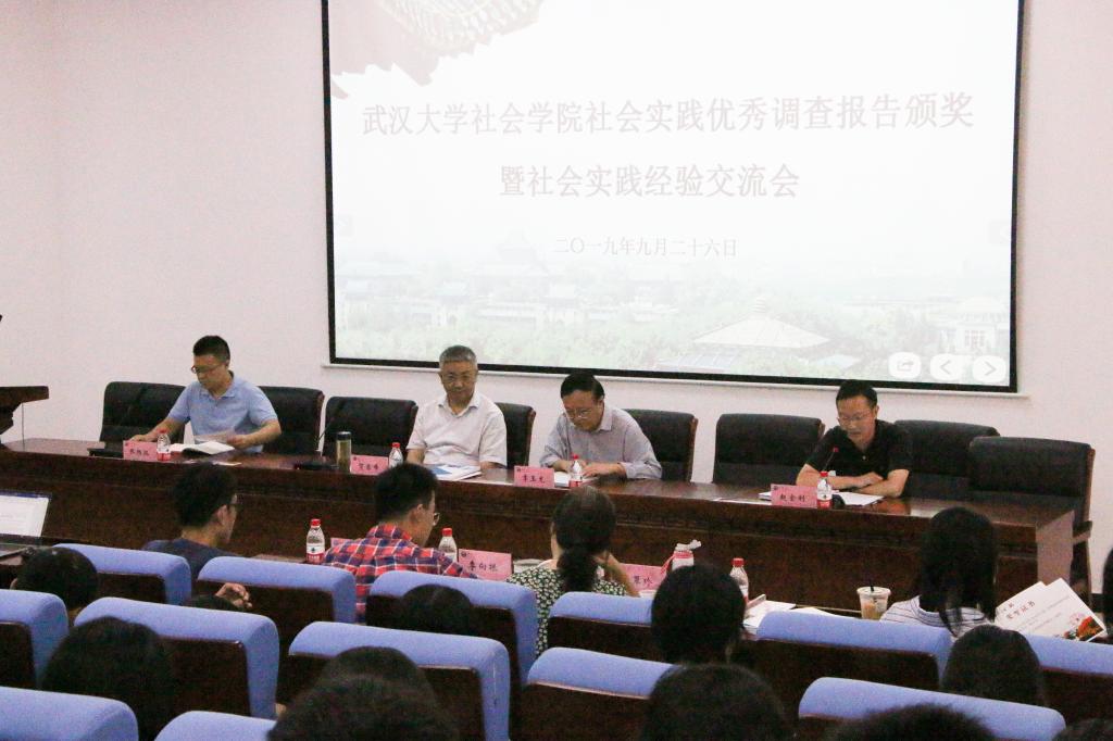 在报告厅举行了社会实践优秀调查报告颁奖暨社会实践经验交流会,党委书记李玉龙、院长贺雪峰、党委副书记赵金利、副院长张杨波出席会议。会议由赵金利主持。