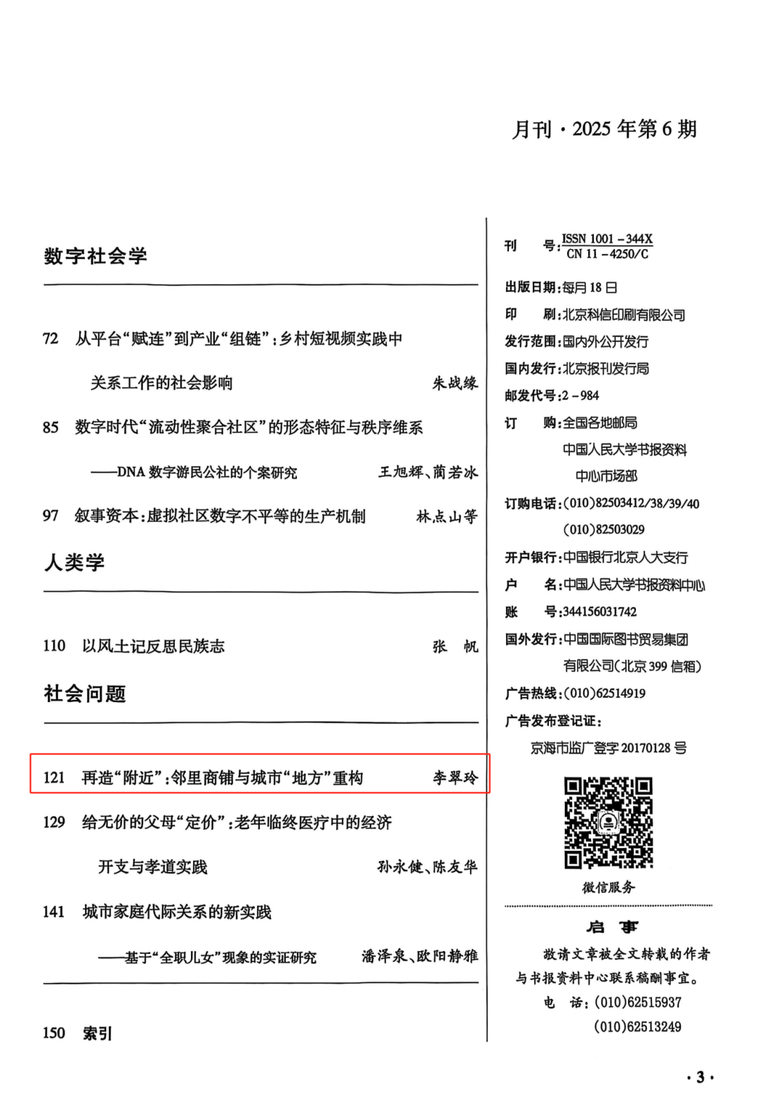 李翠玲副教授在《新视野》2025年第1期发表题为《再造“附近”:邻里商铺与城市“地方”重构》的论文。该文被人大复印报刊资料2025年第6期全文转载。