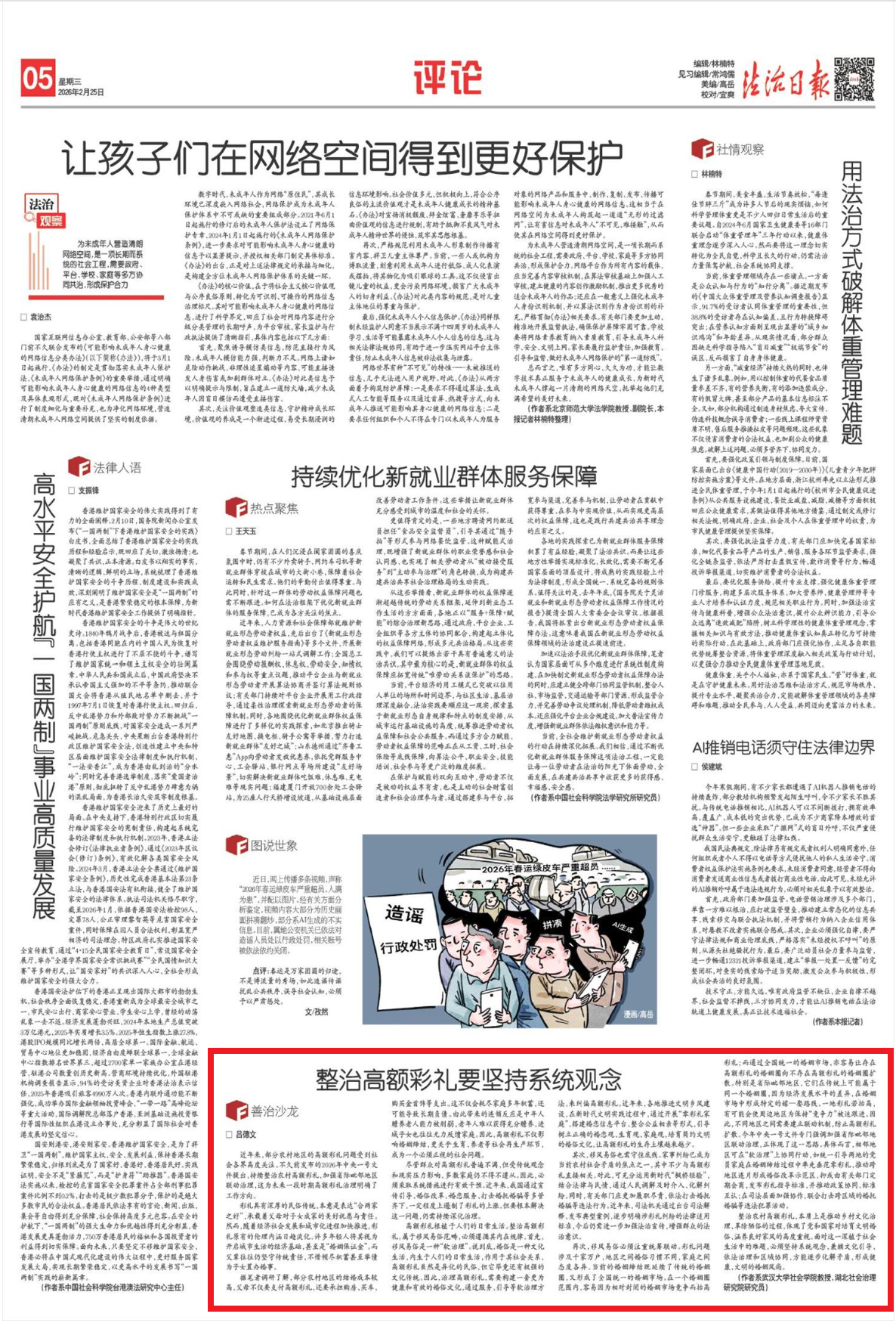 2026年2月25日,成人色情 吕德文教授在《法治日报》第14430期评论版发表题为《整治高额彩礼要坚持系统观念》的文章。
