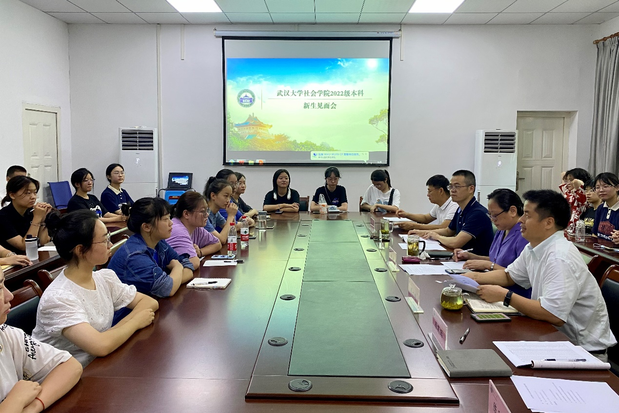 为了让新生更快、更好地了解社会学院,顺利适应大学生活,并增进师生交流沟通,2022年8月19日上午,武汉大学社会学院2022级本科新生见面会举行。院党委书记柳芳,院党委副书记司文超,副院长桂华教授,新生班级导师桂晓伟副教授,党政办公室副主任、本科教学秘书余园老师,辅导员顾笑聪老师、陈珂丽老师和53名新生参加见面会。
