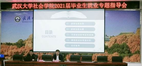2020年9月22日下午两点半,武汉大学社会学院召开2021届毕业生就业工作动员布置会。院党委书记李玉龙、院党委副书记赵金利、辅导员顾笑聪出席了本次会议。会议邀请了学校就业指导与咨询办公室主任朱炜、考公培训机构的叶灵鹏老师为毕业生进行就业指导。本次会议主要分就业工作布置和考公专题指导培训两部分。