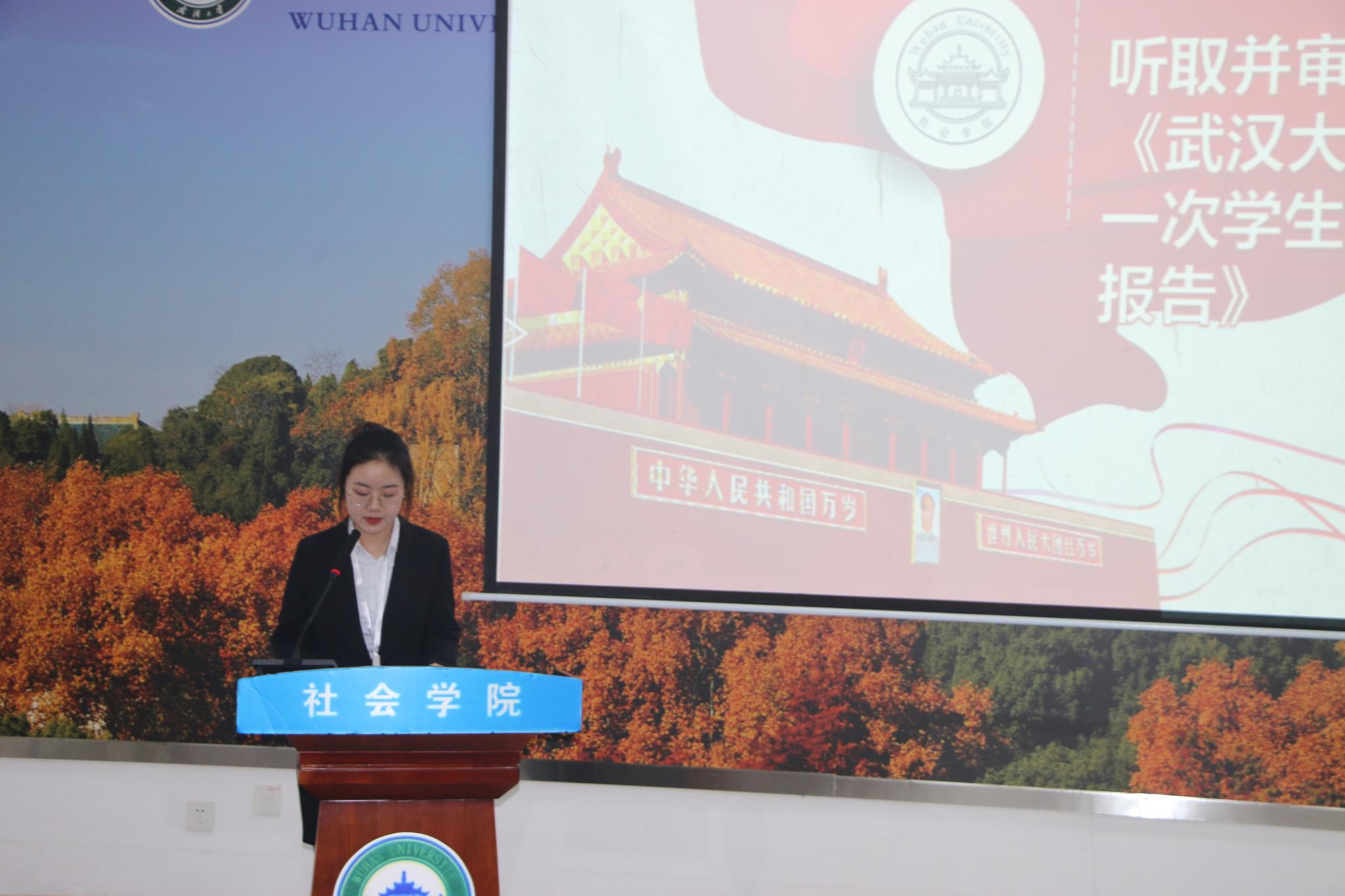 2020年11月6日,武汉大学社会学院第一次学生代表大会在学院报告厅顺利召开。院党委副书记赵金利、辅导员顾笑聪、校学生会代表陈东浩以及学生代表们共同参加了会议。