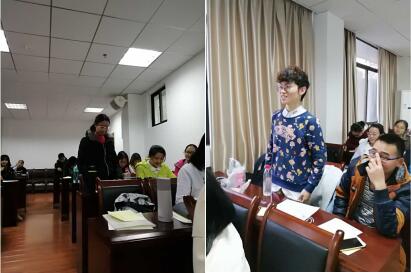 “说青年”,通过击鼓传花的形式,团员们登上时光列车,在过去的岁月里遨游,分享了自己对于过去优秀青年的看法。其中,班长郭杨汗青通过分享自己父母的故事,让团员们了解了八十年代青年们的浪漫情怀,引发了大家的会心一笑;来自湖南的李湘梅同学也分享了当地教育的变迁史,开拓了团员们的视野。大家也跟着主持人一起,回顾了十三大到十八大以来中国社会的转型与变迁,充分地回顾了党与国家的发展历史。