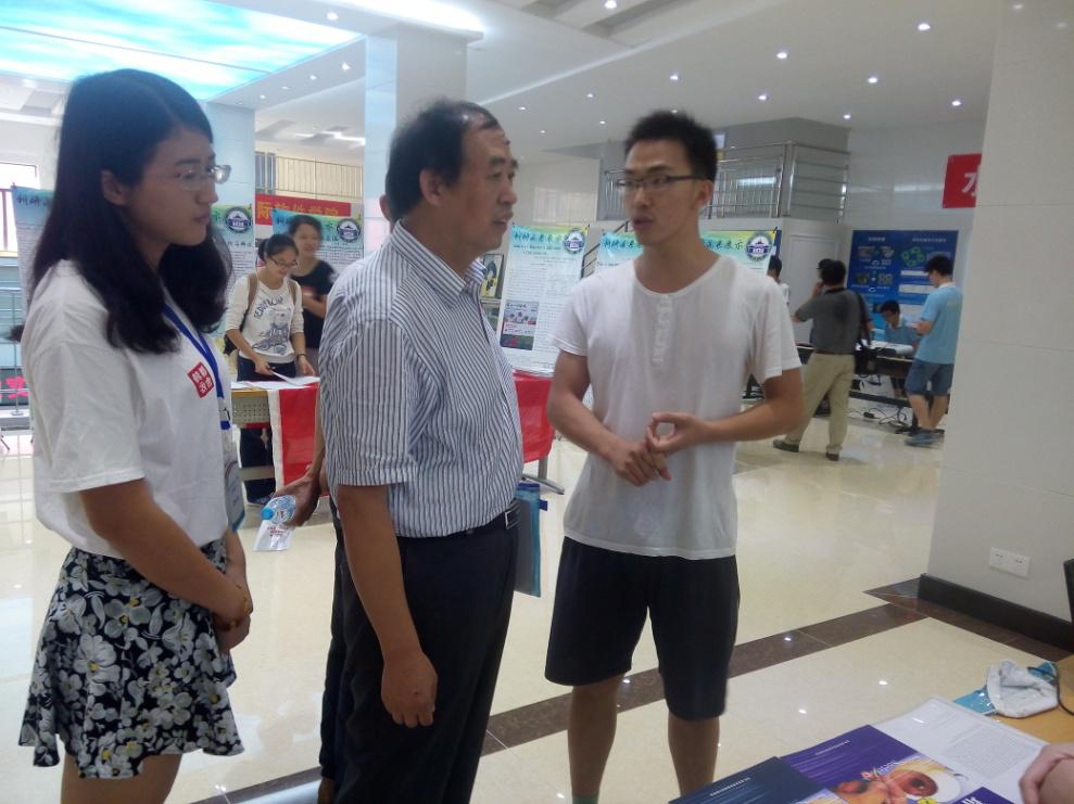 在展台布置上,我系除了传统的展板和作品展示,还利用PPT的投影放映和电台节目的展播等形式,采取生动活泼的方式展现我系的特色与学生创新能力。在上午的展示过程中,韩进书记、骆郁庭副书记、李斐副校长、各学院领导及学生纷纷到我系展台了解展示情况,并对我系的成果给予了肯定。我系实践部和学术部的同学在现场为大家做了热情的讲解,并特意穿上成人色情