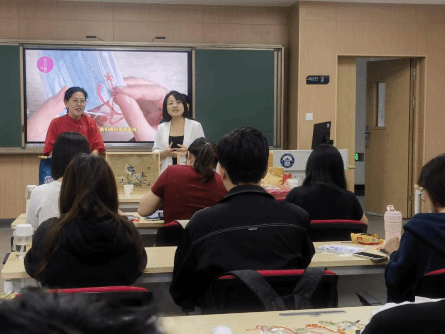 2023年12月初,武汉大学社会学院的蔡磊老师邀请大冶刺绣省级非遗传承人刘小红老师和她的助手程书田老师,一起来到《民俗学概论》课堂,通过分享刺绣文化、教授刺绣技法以及对话交流,引领珞珈学子体会荆楚刺绣文化的底蕴和魅力,感受民艺之工巧以及因艺而绽放的艺人人生。