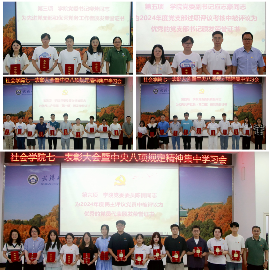 2025年6月18日下午,武汉大学社会学院2025年“七一”表彰大会暨中央八项规定精神集体学习会在报告厅隆重召开。学院全体在校师生党员出席大会。会议由学院党委副书记应志豪主持。