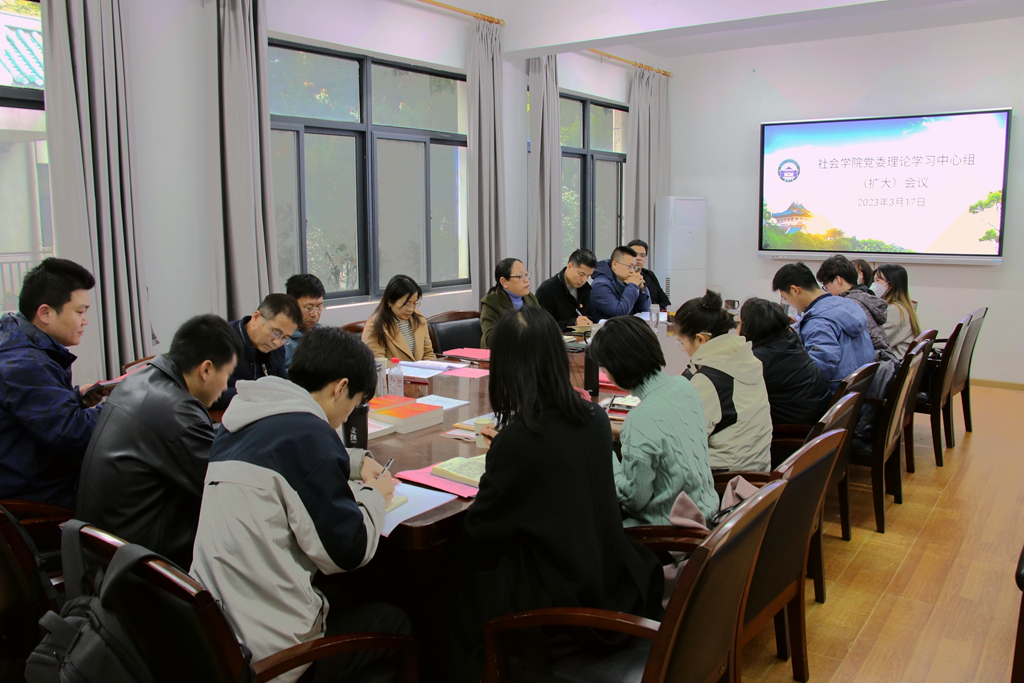 2023年3月17日,社会学院党委理论学习中心组(扩大)集体学习会在学院111会议室举行。学院党委委员、党支部书记、专职组织员、学生辅导员等18人参加了学习。学院党委书记柳芳主持学习会。