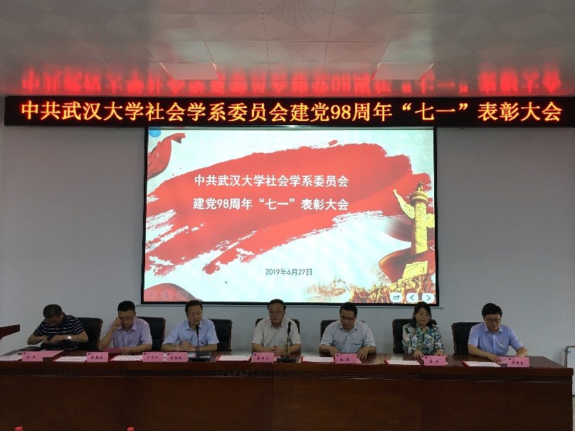 6月27日,社会学系党委在系报告厅隆重举行庆祝建党98周年“七一”表彰大会,全体党委委员出席会议,获表彰代表及师生党员100余人参加大会,会议由系党委副书记赵金利主持。