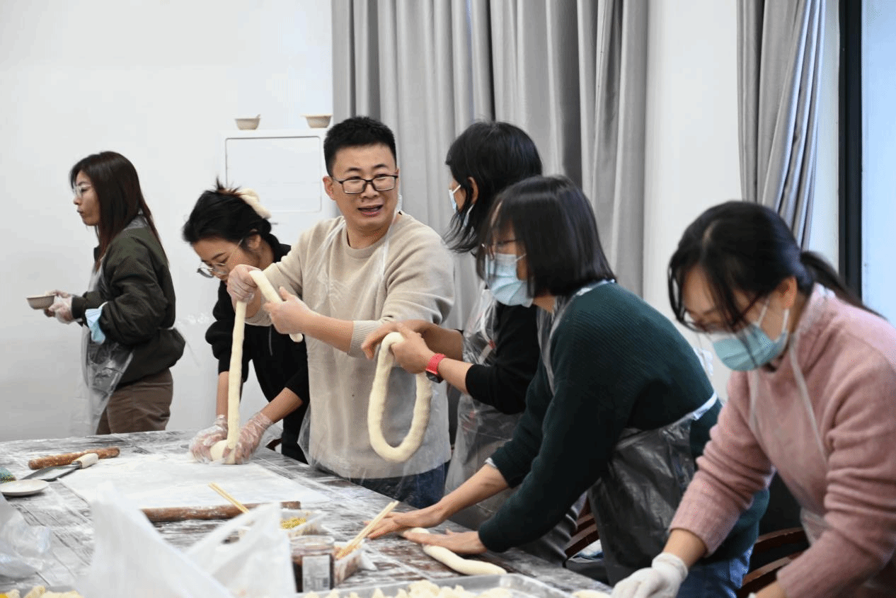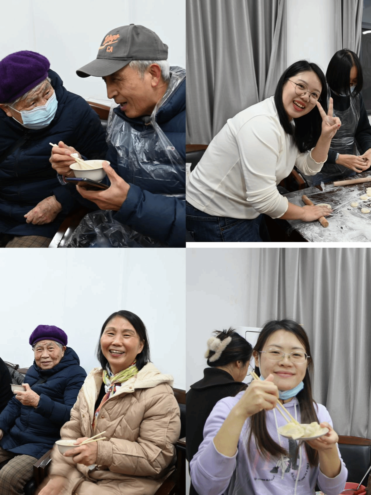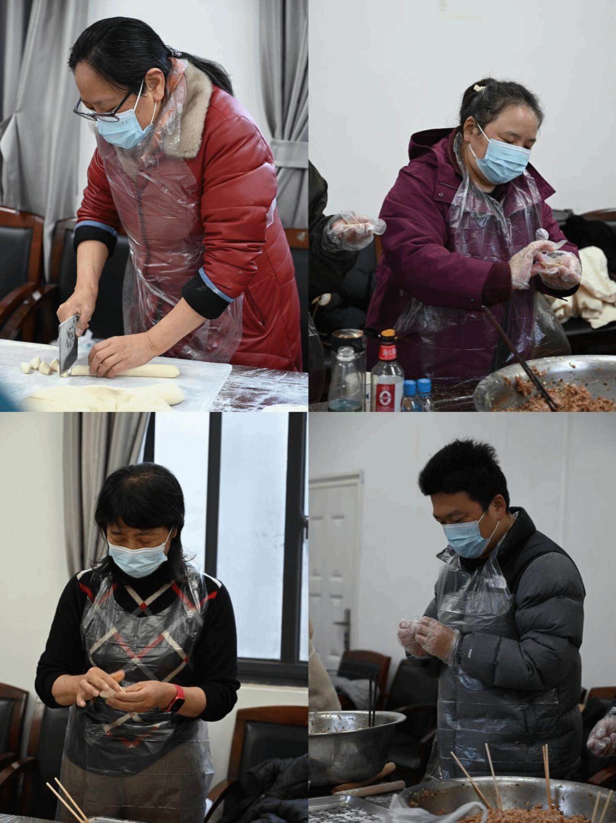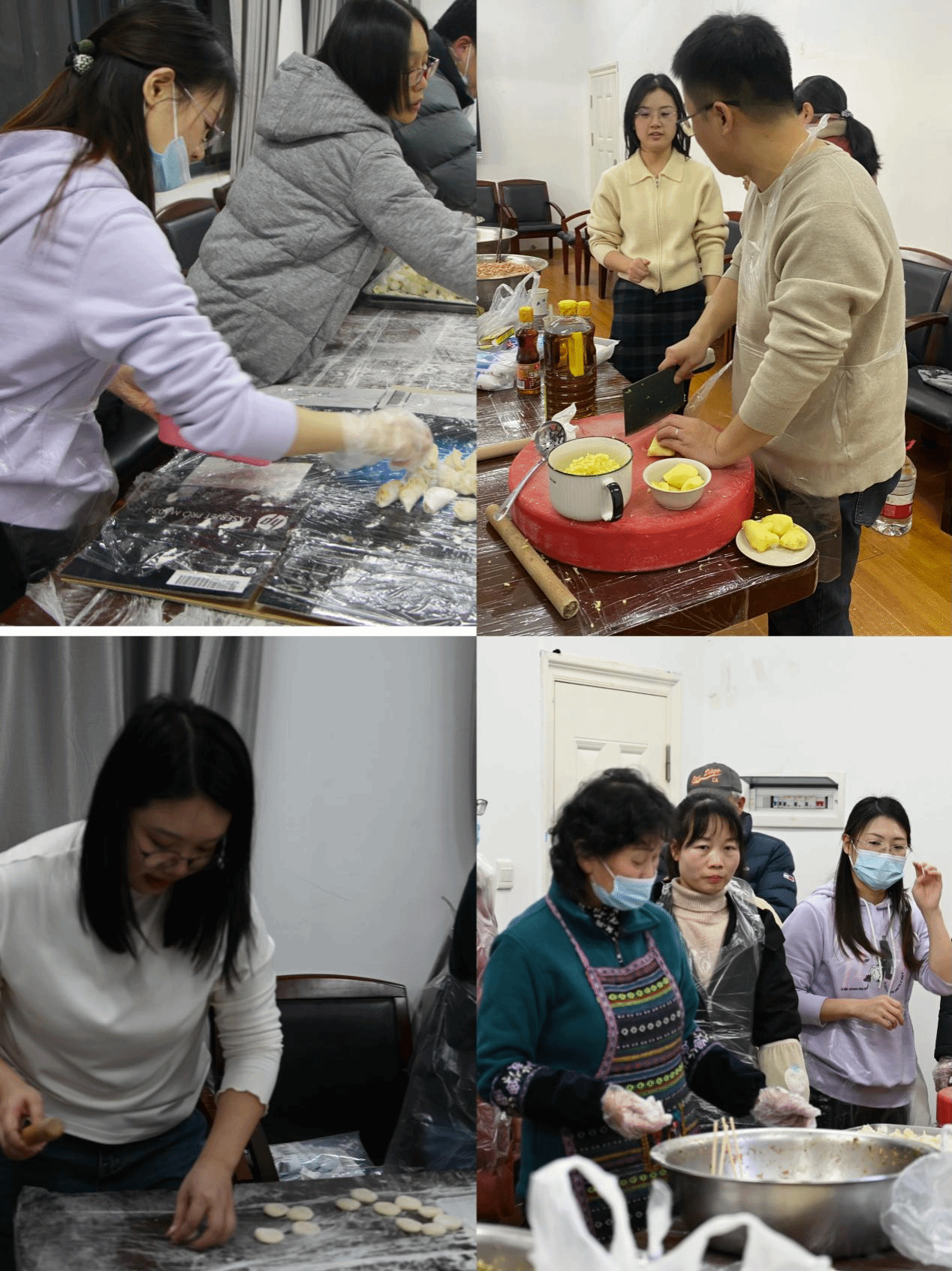 下午两点起教职工们陆续到达现场,积极参与到包饺子过程中,大家互相帮助互相学习,欢声笑语不断,现场气氛非常热烈。第一次成功包出一枚饺子的年轻老师们还自豪地举起“人生第一饺”向大家展示,成功的喜悦之情洋溢脸庞。