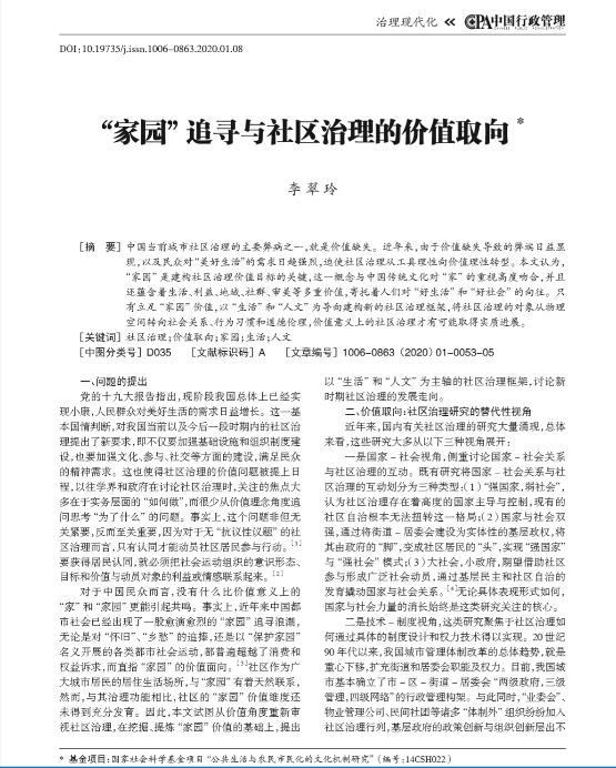都市人类学是李翠玲老师的主要研究方向之一。近年来,李翠玲老师围绕乡村都市化进程中的社区营造和公共生活,在CSSCI学术期刊发表论文近十篇。其中,《“家园”追寻与社区治理的价值取向》发表于《中国行政管理》2020年第1期;《从结构制约到志愿参与:民间信仰公共性的现代转化》和《都市化村庄的公共生活、“二元时间”与地方节奏》分别发表于《民俗研究》2019年第2期和2017年第1期。这两份刊物都是武汉大学认定的重点学术期刊。另外,《从发展到生活:当代城市社区治理的价值转向》一文被《新华文摘》2020年第4期论点摘编(原文发表于《新视野》2019年第5期);《出路或陷阱:个体化视角下的少数民族现代化转型》一文被人大复印报刊资料《民族问题研究》2018年第12期全文转载(原文发表于《北方民族大学学报》2018年第5期)。