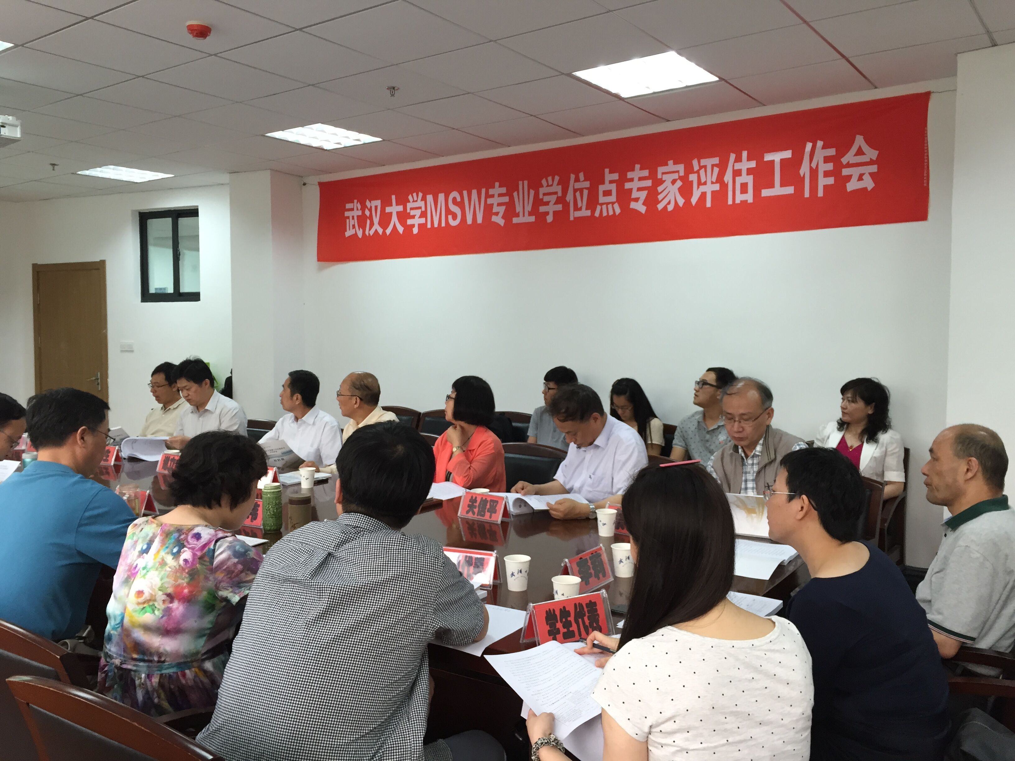 6月12日下午,武汉大学社会工作专业学位点(MSW)专家评估工作会在社会学系会议室召开。来自全国各地高校的9位社会工作专业知名教授组成专家工作组,对我系MSW专业学位点建设情况进行了全面评估。华东理工大学徐永祥教授担任本次评估工作专家组组长,南京大学彭华民教授担任副组长,中山大学蔡禾教授、北京大学谢立中教授、南开大学关信平教授、中国人民大学李迎生教授、华中师范大学向德平教授、中南财经政法大学谭明方教授、武汉科技大学李莉教授组成专项评估工作组。我系党政领导和部分师生代表参加了评估活动。
