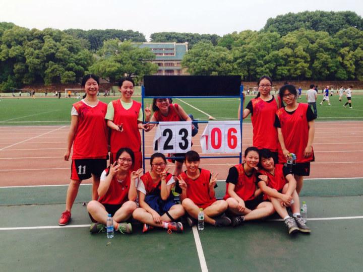 此次参赛人员涵盖了我系2011-2013级本科生2011-2013级以及2012级研究生。她们分别是2013级胡天琪,2012级王靖雯、翟羽佳、张男开慧、夏禺、陈如梦,2011级谢珊、曹梦婷、余梦伊,以及2012级研究生李凤翔。比赛前,参赛队员整装待发,积极热身;啦啦队成员也陆续到齐,赛场营造出昂扬冲击胜利的氛围。
