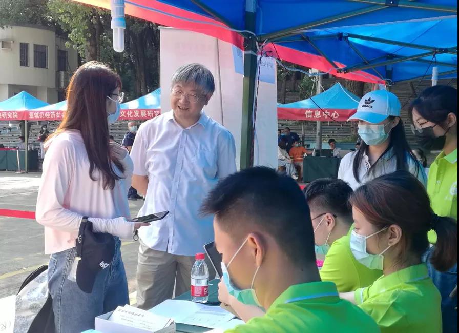 炎炎夏日下,学院领导和辅导员来到现场,对工作人员给予了亲切的关怀和问候,了解新生报到注册情况,并与新生热烈交谈,关心他们的学习、生活的方方面面。新生们也表示对住宿条件很满意,对武大的氛围与环境也很满意,对自己能来到社会学院感到十分幸运。