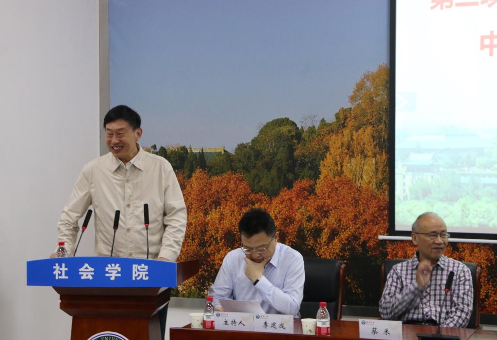 武汉大学校友、中山大学社会学与人类学学院教授蔡禾,以校友的身份对武汉大学社会学院的成立表示祝贺。他结合自己曾经在武汉大学求学和教学的经历,回顾了武汉大学社会学学科的发展历程,以及一直以来武汉大学对社会学专业建设的支持。他表示,经过一代代学者的共同努力,社会学院走到今天非常不易、值得祝贺。武汉大学具有良好的学术氛围,一直坚守着优良的传统,非常勤奋踏实,无论从学生的读书笔记,还是从老师坚持做社会调查,都体现出扎实的学风,对武汉大学社会学的未来充满期待。