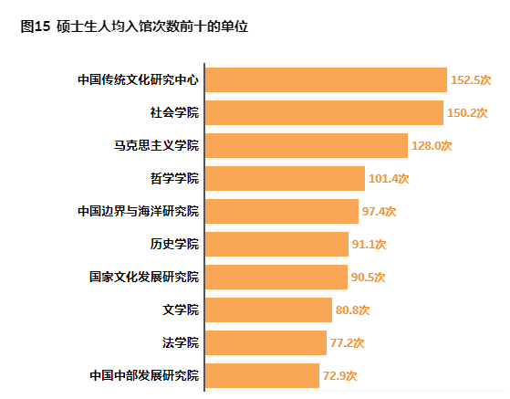 在入馆次数及在馆时长方面,社会学院本科生人均入馆86.9次、人均在馆250.8小时,位列全校第一;硕士研究生人均入馆150.2次、人均在馆426.6小时,位列全校第二。