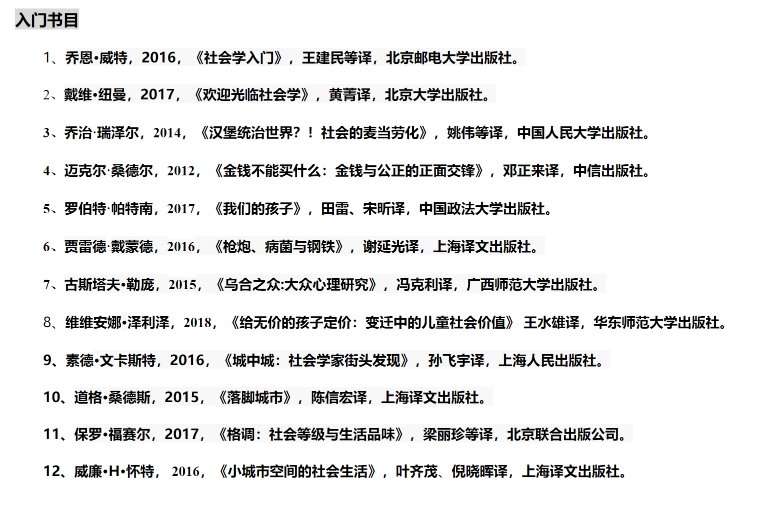 社会学院学风优秀,社院学子时常一同结伴图书馆打卡,于书林间一隅与经典相谈甚欢。学院也贴心地为大家准备了一份书单,从入门到精深,由浅入深 ,让每位学子充分感受到社会学的魅力。