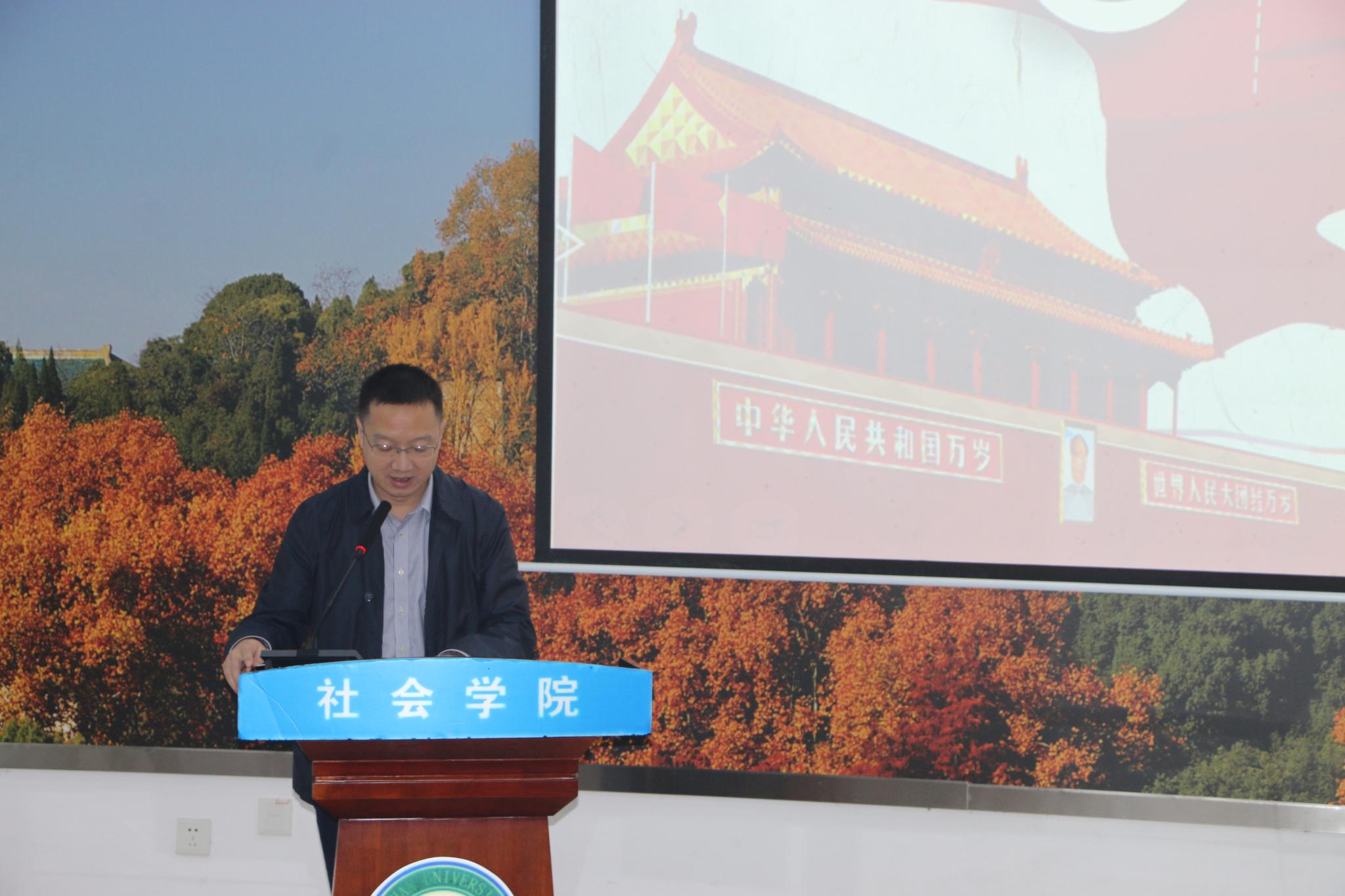 学院党委副书记赵金利致辞。他对过去一年学生会为我院的学生培养与发展做出的重要贡献给予肯定。同时对新一届学生会工作提出了三点要求:第一,要服务同学,在党的领导、团的指导下,做好服务同学的工作,聚焦学生的主责主业,紧密结合我院的人才培养理念,帮助同学们加强学业发展、身心健康、社会融入、权益维护等;第二,要关心同学,发挥好纽带作用,引导广大同学把个人理想融入到党和人民的共同奋斗之中,同时植根同学、代表同学,及时为同学排忧解困,促进学院更好发展;第三,要引领示范,发挥模范带头作用,牢记责任与使命,以饱满的热情与高度的责任感面对学生工作,紧跟学院的发展步伐,影响和带动其他同学共同进步。希望社会学院学生会的成员们能够齐心协力,在全体同学的大力支持下,再创佳绩。