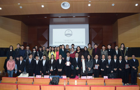 2015年12月12日,华中地区社会学风采大赛在武汉大学如期举行。武汉大学、华中科技大学、华中师范大学、中南财经政法大学、中南民族大学、华中农业大学、武汉理工大学七所高校参加了本次比赛。在激烈的竞争中,选手们斗智斗勇,表现出彩。最终中南财经政法大学的参赛选手夺得冠军,武汉大学位居第二名。